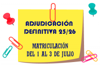 Del 1 al 3 de julio: Plazo de matriculación para el alumnado nuevo participante en el proceso de admisión tanto de la etapa de Infantil como de Primaria.